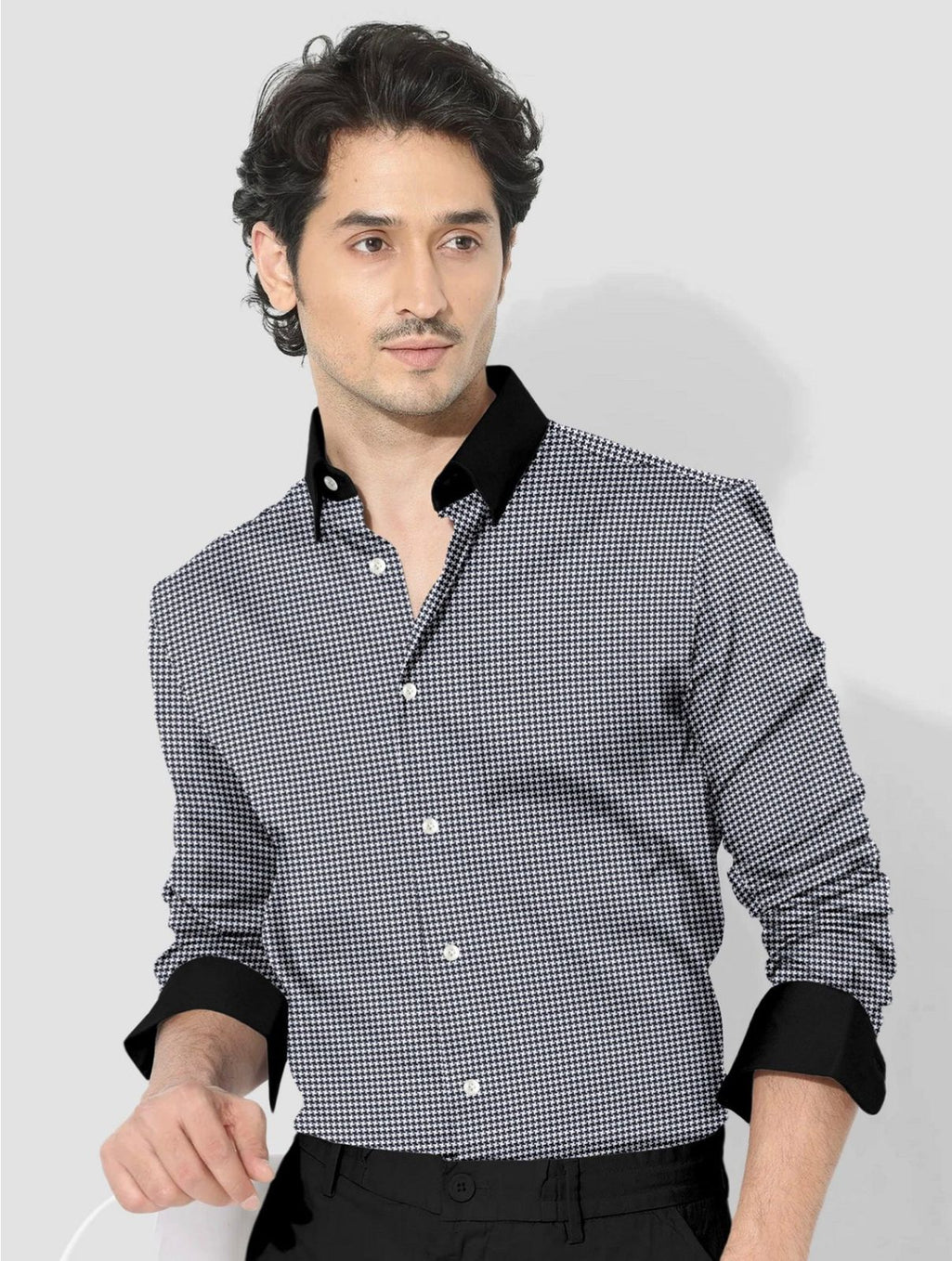 Carbon Black and Meteorite Grey Paisley Pattern Printed Designer Giza Cotton Full Sleeve Shirt